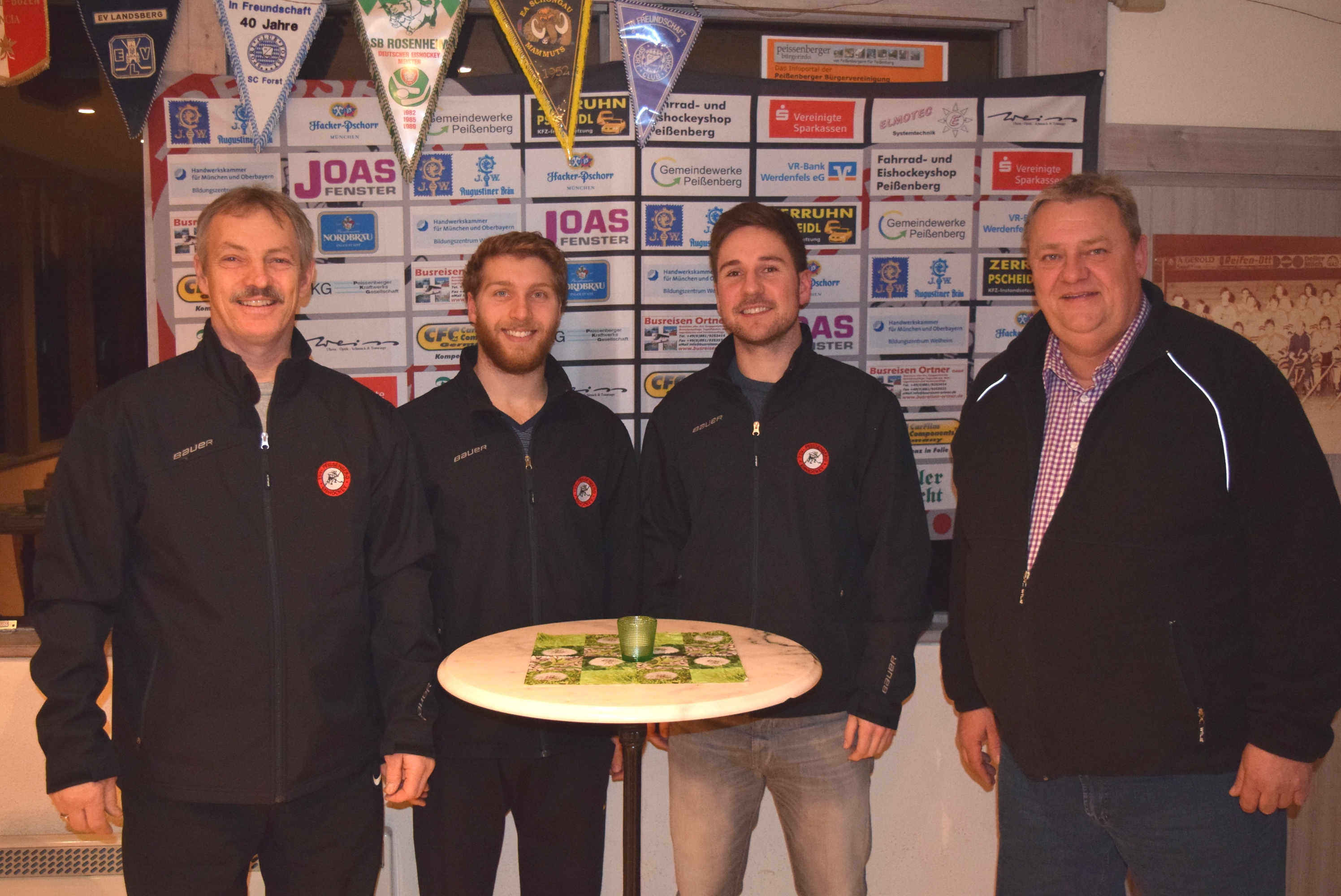 (Foto TSV Peißenberg v.L. Trainer Randy Neal, Tyler Wiseman, Florian Barth und 1. Vorstand Norbert Ortner)