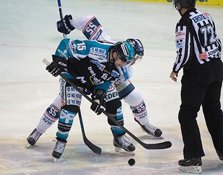 Tore: 1:0 McLean (23./PP2), 1:1 Sarauer (26.), 1:2 Varga (26.), 2:2 Palin (34.), 2:3 Sarauer (37./SH), 3:3 Pallin (57./PP), 3:4 Nagy (62.).