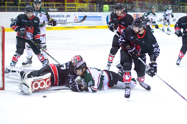 Und er passte heute gleich viermal hinter den Herner Goalie Wendler, der aber in keiner Weise Schuld an der zweiten Niederlage innerhalb einer Woche gegen die Tabellenführer von der Duisburger Wedau hatte. In einem recht kampfbetonten, zerfahrenen Spiel zweier Spitzenteams mit vielen Unterbrechungen und wenig Spielfluss hatten die Füchse am Ende die Nase vorn und vermiesten den Hernern die Revanche. Vor 2082 Zuschauern im gut gefüllten Fuchsbau erlebten die Fans beider Seiten ein für diese Paarung recht faires Spiel, das über die 60 Minuten ohne große 'Ausschreitungen' auf dem Eis auskam. Ein hin und her im ersten ausgeglichenen Drittel, in dem die Duisburger erst in der 18 Minute durch Füchse Topscorer Hübscher nach Vorlage von Joly in Unterzahl in Führung gingen. Die Füchse legten nach und erhöhten in der 20 Minute bei eigener Überzahl sogar noch auf 2:0. Auch die beiden folgenden Drittel recht ausgeglichen. Im letzten Drittel überraschten die Herner die noch im Pausentee befindlichen Füchse und verkürzten in Überzahl auf 2:3 ganze 33 Sekunden nach Wiederanpfiff. Die Herner erhöhten danach merklich den Druck, doch mit Grözingers 4:2 in der 51 Spielminute wurde dem Lokalrivalen vom Gysenberg der Wind aus den Segeln genommen. Mann und Maus warfen sie nun nach vorne, holten Goalie Wendler vom Eis, doch die Wende wollte sich nicht mehr einstellen. Duisburg siegte in einem Spiel auf Augenhöhe.