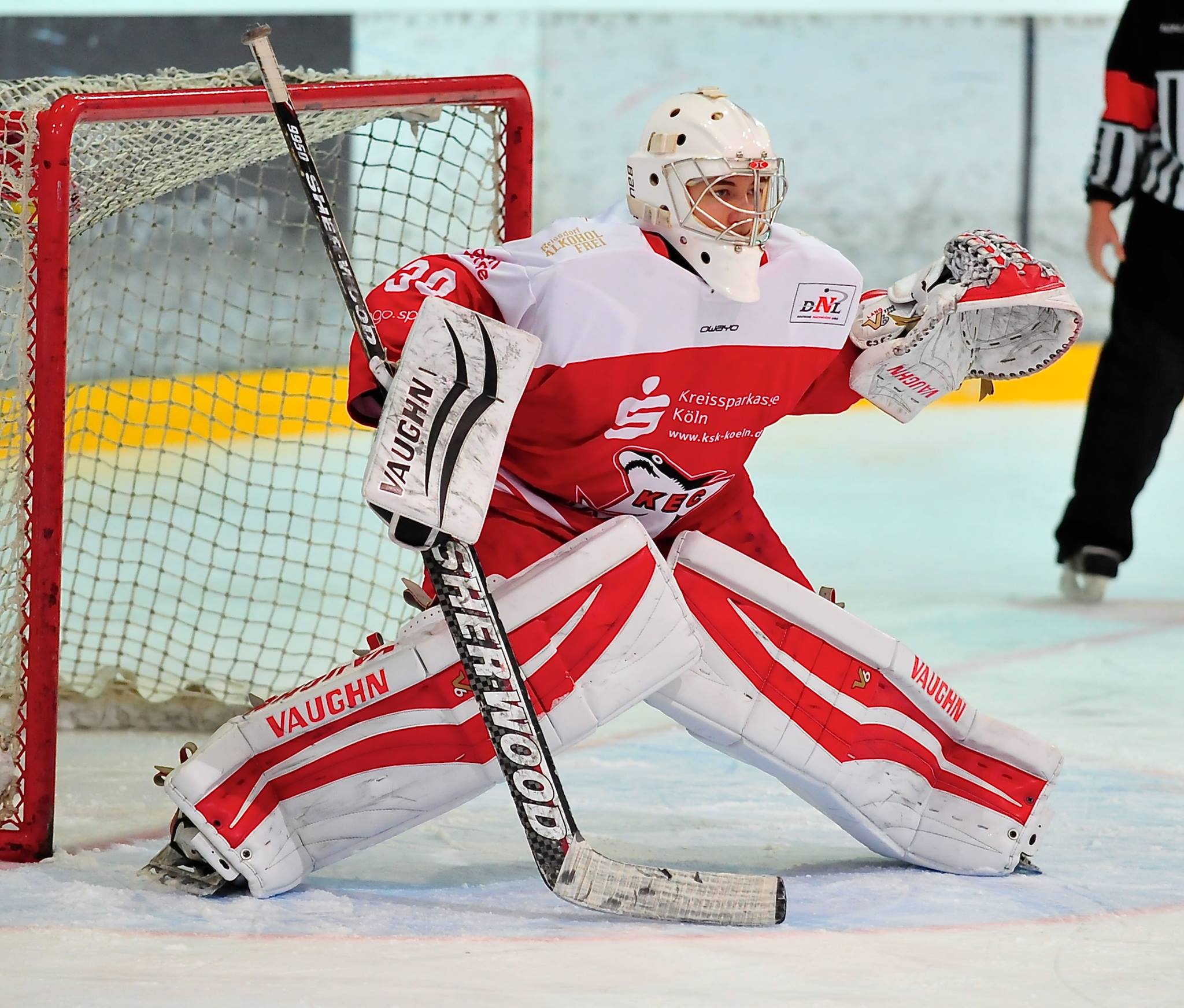 0:5. 9:36 Minuten gespielt. Craig Streu gibt das Handzeichen. Köllejan muss zwischen die Pfosten. „Falsch, ich durfte“, sagt der 19-Jährige, der am morgigen Sonntag seinen 20. Geburtstag feiert. Damals noch mit einer Förderlizenz der Kölner Junghaie ausgestattet wechselt der Rheinländer jetzt fest zum EHC Neuwied und komplettiert mit Björn Linda das Torhüter-Duo bei den Bären. Das Spiel in Duisburg ging übrigens nach kurzer Aufholjagd zum 3:5 noch mit 4:13 verloren. Es war das bisher einzige Spiel des Kölners für den EHC.