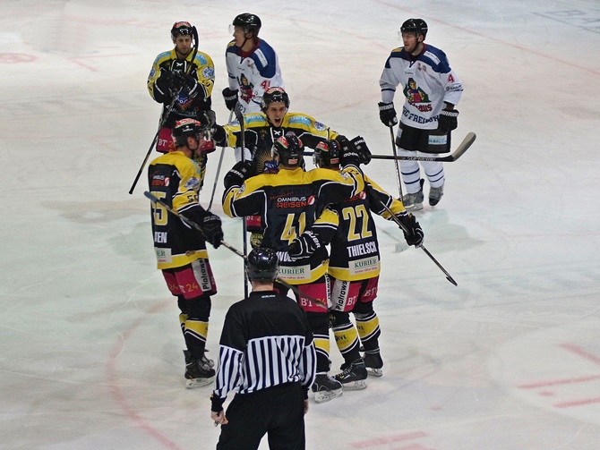 In der Verlängerung zeigten die Tigers, warum sie auf eigenem Eis so erfolgreich sind. Mit einer lautstarken Fankulisse im Rücken drückten sie weiter aufs Tempo und angelten sich die meisten Spielanteile. Ein zwischenzeitlicher Treffer der Gastgeber konnte nicht gewertet werden, weil das Spiel schon zuvor unterbrochen wurde. Doch 13 Sekunden vor dem Ende und kurz vor einem drohenden Penalty, erzielte ausgerechnet der Ex-Freiburger Christopher Kasten das Golden-Goal und sicherte seiner Mannschaft den begehrten Zusatzpunkt. Bayreuth setzte ein erneutes Ausrufezeichen und zeigt damit kurz vor den Play-Offs, dass mit den Oberfranken wohl hart zu rechnen ist. (mr)