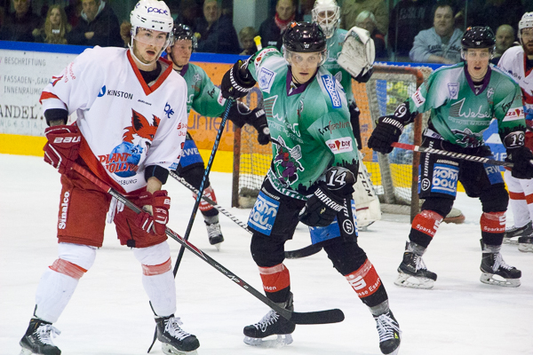 Mit 4:0 und 1:0 gingen die ersten beiden Drittel an die Füchse, die sich spielerisch nicht anwesenden Essenern gegenüber sahen. Zeitweise wirkte es wie Protest und grenzte an Arbeitsverweigerung was die Kufenflitzer der Ruhrmetropole so auf das Eis brachten. Moskito Coach Gentges rang schon während des Spiels nach Luft und dürfte nach dem Spiel noch wichtige und passende (lautstarke) Worte finden. Die Mannschaft - ein Schatten ihrer selbst. Auch von Derby-Stimmung leider keine Spur. Die war dann, aber auch nur stark dosiert, im letzten Drittel spürbar, als durch eine doppelte und eine einfache Überzahl Essen zweimal den Puck hinter Goalie Felix Bick brachte, Essen so auf 2:5 verkürzte die Fans ein wenig Stimmung in die Bude brachten, bevor Lascheit mit dem 6:2 das endgültige K.o. der Essener besiegelte. Für kurzweilige Unterhaltung sorgten dann noch die Boxlegenden Pfohl für die Füchse und Schröder für die Moskitos. Die Füchse dürfen an dieser Stelle allerdings froh sein, dass Pfohl keine Spieldauerstrafe erhielt und somit der Mannschaft beim wichtigen Spiel in Leipzig zur Verfügung steht. Attestiert werden den beiden zumindest Haltungsnoten von 4,8.