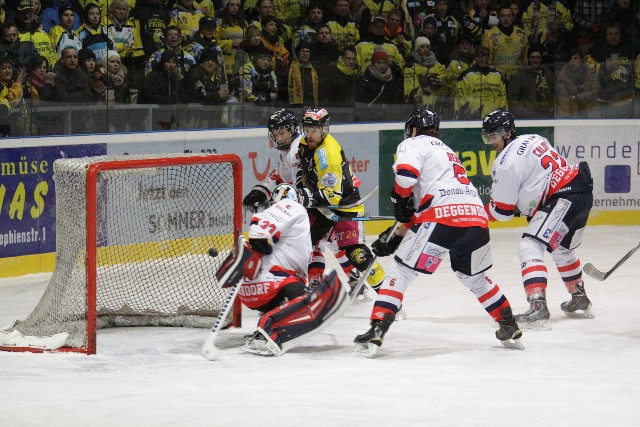 Die Niederbayern änderten auch im zweiten Abschnitt nichts an ihrer Strategie der unter ihrem neuen Trainer gewonnenen Stabilität als Priorität im Spiel. Aus einer massierten Deckung heraus warteten sie gegen die zwar bemühten, aber oft nicht wirklich durchschlagend wirkenden Hausherren, auf Konterchancen. Eine davon nutzten sie gegen die zu offensive EHC Abwehr per 2 gegen 1 Konter zum Ausgleich. Whitecottons Schuss konnte Wiedemann zwar noch klasse parieren, doch gegen den Nachschuss von Litesov war er machtlos. In einer späteren Unterzahl der Gelb-schwarzen tat sich dann aber einiges. Erst kullerte ein verdeckter und mehrfach abgefälschter Potac-Fernschuss zum 2-1 über die Linie und noch im gleichen Powerplay glichen die Gäste erneut aus. Scharf am Pfosten angespielt drückte erneut Litesov die Scheibe in die Maschen und stellte die Begegnung praktisch erneut auf Null.