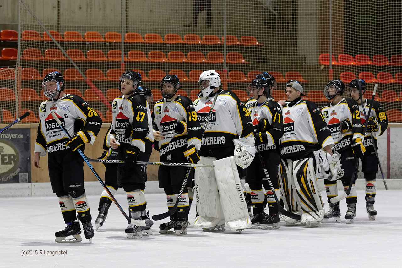 In den darauf folgenden 20 Minuten fanden die Wanderers besser in ihr Spiel. Unterstützt wurden sie dabei von rund 100 mitgereisten schwarz-gelben Anhängern, die das Auswärtsspiel stimmungstechnisch zu einem Heimspiel verwandelten. Der Gästeblock hatte kurz nach Wiederbeginn auch allen Grund zur Freude! Martin Pfohmann traf in der 22. Spielminute mit einem platzierten Schuss von links außen und setzte die Partie zurück auf null. Der Jubel verstummte jedoch keine zwei Minuten später. In personeller Überzahl gelang es den Gastgebern den alten Spielabstand wiederherzustellen. Doch auch die Wanderers hatten die richtige Antwort prompt parat. Ebenfalls mit einem Mann mehr auf dem Eis, gelang es Daniel Rossi (25. Min.) das 2:2 zu markieren. Die Freude zum erneuten Ausgleich währte jedoch nicht lange. Noch in derselben Minute trat das immer wieder überfordert wirkende Schiedsrichtergespann in den Mittelpunkt.