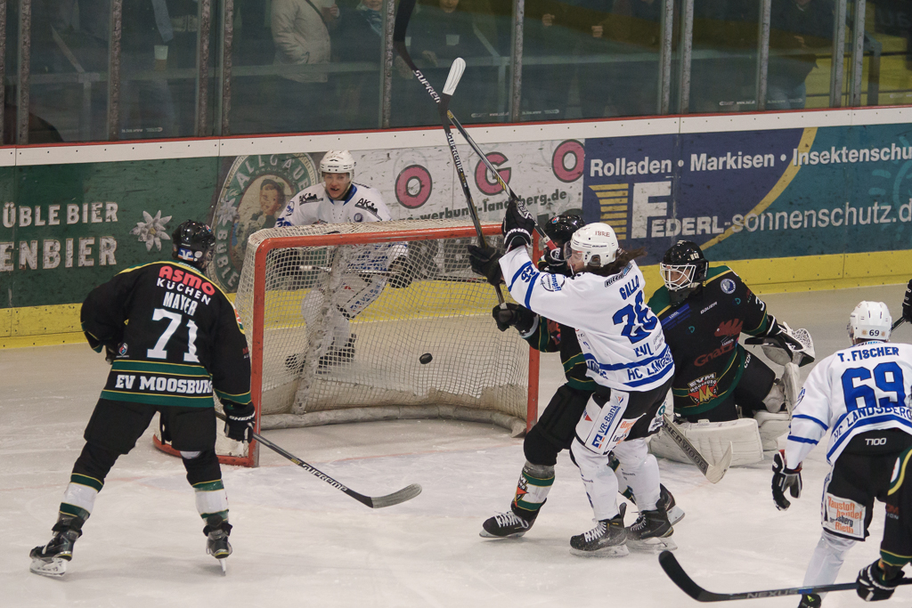 (Bayernliga-Landsberg) Die Riverkings besiegen die Moosburger erneut mit 7:4 (2:1/2:2/3:1) und setzen sich nach dem ersten Spieltag der Zwischenrunde an die Spitze der noch jungen Tabelle. Das Spiel hatte Playoff Charakter, so Pressesprecher Bastian Amann vom EV Moosburg. Andreas Zeck dagegen freute sich über die drei Punkte, analysierte das Spiel seiner Schützlinge allerdings etwas kritischer.