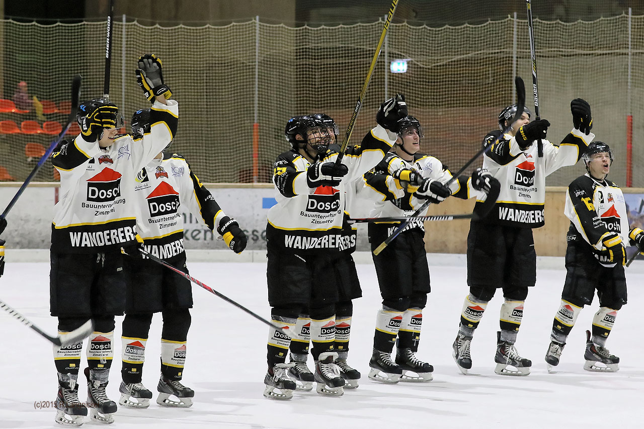 Bereits zwei Tage später bekamen die Franken die Chance auf eine Revanche. Aber auch im Rückspiel gelang es dem EVP nicht, die Wanderers zu besiegen. Während der Fanclub „Freaky Family“ zum Anpfiff der Partie schwarz-gelbes Konfetti in die Höhe schoss, schossen auf dem Spielfeld die Hausherren das erste Tor an diesem Abend. Angreifer Christian Czaika nutze ein Zuspiel von J.C. Cangelosi nach gerade einmal 25 gespielten Sekunden zum umjubelten 1:0 aus! Die „Zunge schnalzen“ konnten die rund 300 Zuschauer im Germeringer Polariom wenige Minuten später. Mit einem sehenswerten Solo von US-Boy Cangelosi erhöhte sich der Spielstand auf der Anzeigetafel. Im Mitteldrittel haderten die Hausherren immer öfter mit dem Schiedsrichtergespann oder sich selbst. Durch zahlreiche Strafzeiten bot man den Gästen zahlreiche Gelegenheiten zurück in die Partie zu finden. Zum Glück der Hausherren präsentierte sich Pegnitz gerade in personeller Überzahl an diesem Abend nicht von seiner besten Seite. Bestrafft wurde die fehlende Kaltschnäuzigkeit von Benedikt May. Er bekam die Scheibe von Mitspieler Martin Pfohmann passgenau aufgelegt und sorgte in Unterzahl mit einem schönen Treffer für das 3:0. Die Nerven verlor nach einem Foul (34. Min.) von Nicholas Becker der Pegnitzer Patrick Franz und schlug auf sein Gegenüber ein. Da auch Becker die Fäuste nicht still halten konnte, wurden beide Spieler mit eine Spieldauerdisziplinarstrafe bestraft, was eine Sperre im kommenden Spiel mit sich zieht. Die Partie endgültig vorentscheiden konnte in der 48. Spielminute Stefan Sohr. Der 26-Jährige entdeckt in dieser Saison seine Torjägerqualitäten und konnte einen Schuss von Sven Schittenhelm unhaltbar in das gegnerische Tor abfälschen. Eine unschöne Szene bekamen die Zuschauer eine Minute später zu sehen. Christian Czaika erwischte einen Pegnitzer Spieler beim Vorbeifahren im Gesicht, sodass dieser verletzt am Boden liegen blieb. Da der Spieler anschließend behandelt werden musste, sprachen die Unparteiischen eine Matchstrafe gegen den Angreifer aus. Vom Tore schießen abhalten sollte die Strafzeit die Hausherren jedoch nicht. Durch die Treffer von Rückkehrer Nico Rossi und Verteidiger Markus Koch stand am eine ein deutliches 6:1 auf dem Spielbogen. Mit den beiden Siegen befinden sich die Wanderers nun gemeinsam mit den „RiverRats“ Geretsried auf den ersten beiden Tabellenplätzen.
