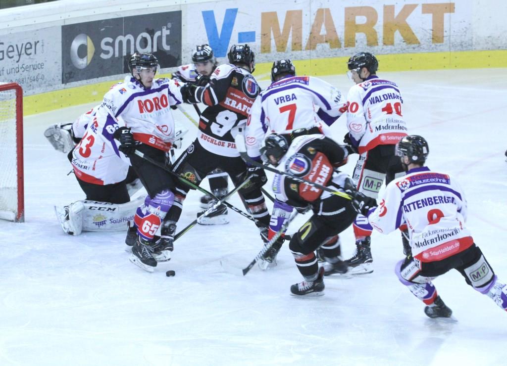 Dazwischen ging es fast permanent Richtung Gäste-Tor, aber Cristian Göttlicher, Florian Brenninger, Alexander Voglhuber und nochmal Brenninger fanden in Torhüter Matthias Huber ihren Meister. Dessen Vorderleute waren keinesfalls chancenlos. Nach knapp neun Minuten, die Eispiraten waren in Unterzahl, ging es vor und hinter Keeper Thomas Hingel richtig rund. Mindestens zweimal kratzen seine Mannschaftskameraden den Puck noch vor der Linie weg! Attenberger und Vrba hatten noch allerhand Möglichkeiten, den Vorsprung auszubauen und Fabian Kanzelsberger jagte einen Blueliner an den Pfosten.