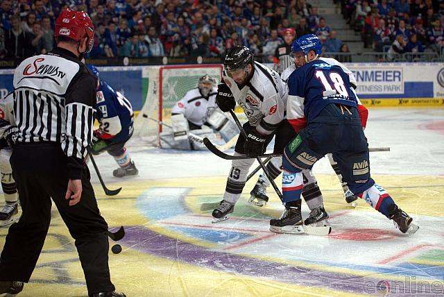 Nach der 1:2-Niederlage im ersten Viertelfinalspiel, wollten die Franken heute vor heimischen Publikum die Serie ausgleichen. Die Adler hingegen wollten direkt da anknüpfen, wo sie am vergangen Mittwoch aufgehört hatten. Und so boten beide Mannschaften von Beginn an eine packende und temporeiche Partie mit guten Gelegenheiten auf beiden Seiten. Zwei Minuten waren gespielt, als die Adler mit einem immens stark spielenden Denis Reul erstmals gefährlich vor Jochen Reimer im Tor der Nürnberger auftauchten. War der Adler-Verteidiger zunächst noch am Tigers-Schlussmann gescheitert, so war dieser wiederum zwei Minuten später machtlos, nachdem sich Denis Reul alleine gegen die Nürnberger Defensive durchgesetzt hatte. Kai Hospelt nutzte die Vorarbeit und überwand Reimer zum 1:0 (4.). Nürnberg ließ sich davon aber nicht einschüchtern und setzte direkt im Gegenzug Dennis Endras im Mannheimer Tor gehörig unter Druck. Als dann Nürnberg wie bereits im Hinspiel am Mittwoch mit zwei Mann mehr auf dem Eis agieren durfte, musste sich auch Dennis Endras geschlagen geben. Leonhard Pföderl, mittlerweile zum Nürnberg Playoffmonster avanciert, schlug erneut zu und traf zum 1:1-Ausgleich (6.). Die Partie nahm in der Folge an Intensität zu. Jason Jaspers und Marco Nowak (9.) verpassten die Führung für ihr Team, ähnlich wie auf der Gegenseite Adler-Kapitän Marcus Kink freistehend vor Jochen Reimer (14.). Besser machte es da Matthias Plachta: Nach toller Vorarbeit von Kai Hospelt stellte der Mannheimer mit seinem Treffer zum 2:1 den alten Abstand wieder her (19.).