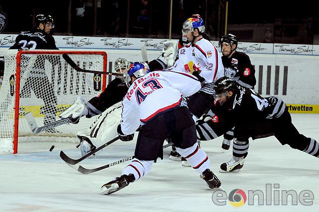 Der EHC Red Bull München kann Derby’ s auf eigenem Eis doch noch für sich entscheiden. Vor 5.275 Zuschauern gewannen die Red Bulls durch die Tore von Thomas Holzmann (2x), Danny Richmond, Grant Lewis, Martin Hinterstocker sowie Ryan Duncan verdient mit 7:5 gegen die Thomas Sabo Ice Tigers Nürnberg und bleibt damit im Rennen um Platz 6.