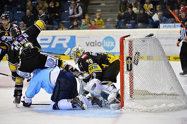 Dafür war der KEV im zweiten Abschnitt vollkommen Herr der Lage. Erst sorgte Roland Verwey (34.) für den mehr als verdienten Ausgleich, dann nur Sekunden später stocherte Joshua Meyers einen Perrault Schuss über die Linie. Den Schlusspunkt in diesem Drittel setzte Adam Courchaine (40.) mit seinem Power- Play Tor. Krefeld kam sehr selbstbewusst aus der Kabine und wollte diesen Dreier mit aller Macht. Trotz Ausfälle durch Verletzungen und Sperre, machte Schwarz- Gelb weiter Druck auf das Tor der Freezers. Allerdings lies man wieder viele Chancen liegen und wurde prompt dafür bestraft.