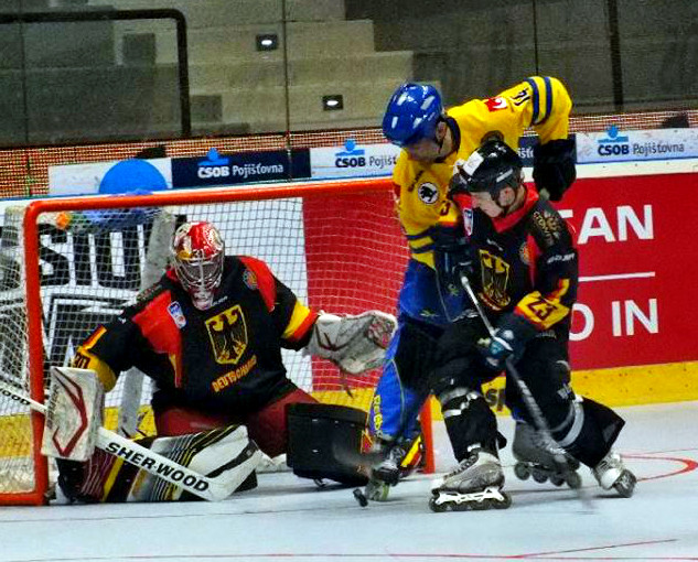 In zweiten Spiel bei der InLine Hockey WM 2014 in Pardubice musste Trainer Georg Holzmann weiterhin auf Sören Sturm und Adriano Carciola verzichten. Bei Letzterem besteht aber die Hoffnung, dass er am Donnerstag wieder ins Team zurückkehrt. Das „A“ von Sören Sturm erhielt Ales Jirik. Im Kasten der Holzmann-Truppe stand an diesem Tag Marco Eisenhut (Landshut).