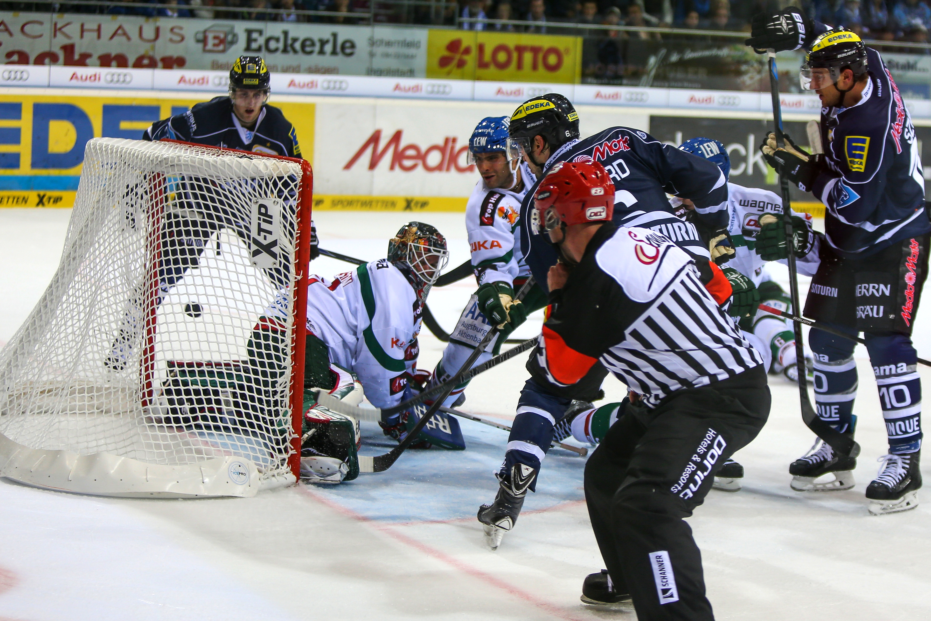 Das nächste Tor fiel dann auf der Gegenseite, fand jedoch keine Anerkennung. Bei einem Konter des AEV beförderte Caporusso den Puck zwar über die Linie, aber das Tor war zu diesem Zeitpunkt bereits verschoben, wie das Schiedsrichtergespann nach Videostudium entschied (49.).