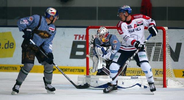 Die Red Bulls begannen die Partie mit extrem hohen Tempo und schnürten die Eisbären im eigenen Drittel ein. Die erste große Möglichkeit hatte Garrett Roe, als er sich durch die gesamte Hintermannschaft der Hauptstädter spielte, aber an Torhüter Petri Vehanen scheiterte (2.). Kurz darauf schoss Felix Schütz nach einer schnellen Drehung den Puck am Tor vorbei (5.). Und selbst mit brachialer Gewalt kam der EHC nicht zum Torerfolg: Andy Wozniewski schoss von der blauen Linie, Mads Christensen fälschte die Scheibe neben das Tor ab (10.). Kurz vor der Pause kamen die Eisbären durch einen Konter zu ihrer größten Möglichkeit: Barry Tallackson spielte die Scheibe vor dem Tor quer, Jens Baxmann traf den Puck nicht richtig und Florian Hardy im EHC-Tor konnte parieren (20.).
