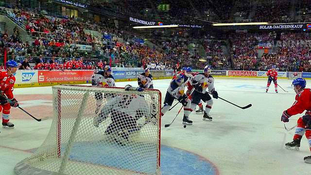 Im Mittelabschnitt versuchten die Münchner mit Macht zurück ins Spiel zu finden, kamen aber auch in Überzahl einfach nicht am überragenden Dennis Endras vorbei. In der Folge wurde die Partie zunehmend rauer, die besseren Möglichkeiten hatten aber erneut die Hausherren. Mannheims Top Scorer und Spieler des Monats, Glen Metropolit, der bereits die beiden ersten Tore vorbereitet hatte, nutzte den Abpraller von Jamie Tardif und verwandelte selbst zum 3:0 (32. Spielminute). Zwar hatten die Münchner danach zweimal den Anschlusstreffer in Aussicht, doch weder Garret Roe noch Evan Brophey konnten ihre Chancen verwerteten. Ähnlich erging es allerdings auch Jon Rheault kurz vor der Pause, der nach einer tollen Vorlage von Jochen Hecht das Gehäuse der Gäste nur knapp verfehlte.