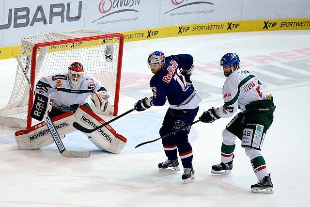 Der Schlussabschnitt war von Spannung kaum zu überbieten. Beide Teams erspielten sich zahlreiche Torchancen, scheiterten allerdings meist an den beiden starken Torhüter Florian Hardy (EHC Red Bull München) sowie Markus Keller (Augsburger Panther), der nach dem dritten Münchner Treffer Chris Mason im Tor der Schwaben ersetzte. „Ich habe Chris nach dem dritten Gegentor herausgenommen, da er innerhalb weniger Sekunden zwei Gegentreffer bekommen hat", sagte Gästetrainer Larry Mitchell auf der anschließenden Pressekonferenz. In der 48. Minute musste Keller dann aber doch hintersich greifen. Jon DiSalvatore brachte mit seinem Treffer zum 4:2 die Vorentscheidung. In der Folge warfen die Panther zwar nochmals alles nach vorne, zu mehr als den 4:3 Anschlusstreffer durch Mike Connolly (49.) sollte es am Ende jedoch nicht mehr reichen.