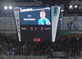 Doch die Adler gaben sich nicht geschlagen. Auch sie hatten einen Goc in ihren Reihen. Und auch er traf per Schlagschuss von der blauen Linie zum 4:2.Nun begann bei den Fans das Zittern. Konnten die Wild Wings den Vorsprung über die Zeit retten oder würde Mannheim im Schlussspurt noch zulegen können? Die Schwenninger verteidigten mit Mann und Maus und als die Gäste den Torhüter zugunsten eines weiteren Feldspielers vom Eis nahmen, war es erneut Dan Hacker, der mit seinem dritten Tor an diesem Abend alles klar machte.