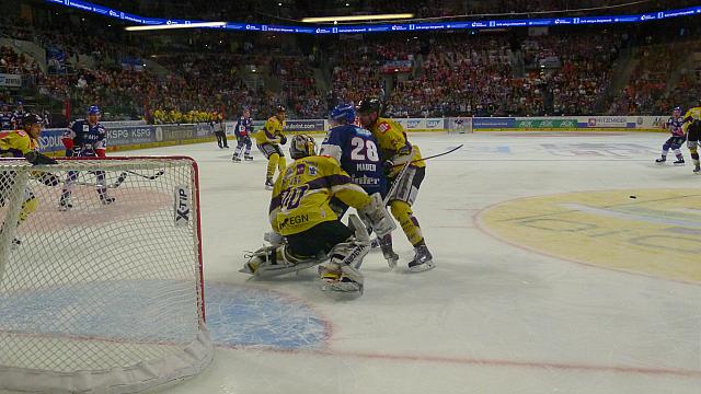 Mit dem letzten Heimspiel vor Weihnachten, dem „Spiel der leuchtenden Herzen“ zugunsten von „Adler helfen Menschen e.V.“, läuteten die Adler traditionell die Festtage ein. Vor ausverkauftem Haus und stimmungsvoller Kulisse entwickelte sich von Beginn an eine spannende Partie mit zahlreichen Torchancen für beide Teams. Zwar mussten die Adler bereits nach 20 Sekunden mit einem Mann weniger auf dem Eis agieren, als Andrew Joudrey auf die Strafbank musste, doch die Hausherren überstanden die Strafe unbeschadet und erarbeiteten sich über Mirko Höfflin nach rund vier Minuten die erste Topchance. Nach toller Vorarbeit von Frank Mauer und Christoph Ullmann verfehlte sein Schuss jedoch knapp das Tor der Gäste. Die Krefelder zeigten sich in der Folge kämpferisch und kamen nun zunehmend besser ins Spiel, während sich die Adler zeitweise schwer taten. Das änderte sich ab der 14. Minute: Beim Schuss von Kai Hospelt war Tomas Duba noch zur Stelle, beim Nachschuss von Ronny Arendt rettete KEV-Verteidiger Robin Weihager auf der Linie. Keine zwei Minuten später bekam Duba mehr zu tun, als ihm wohl lieb sein konnte, als die Adler für rund 70 Sekunden in doppelter Überzahl ran durften. Frank Mauer (15.) und Martin Buchwieser hatten gute Einschussmöglichkeiten, doch die Krefelder hielten dem Druck stand und retteten so das 0:0 in die Pause.