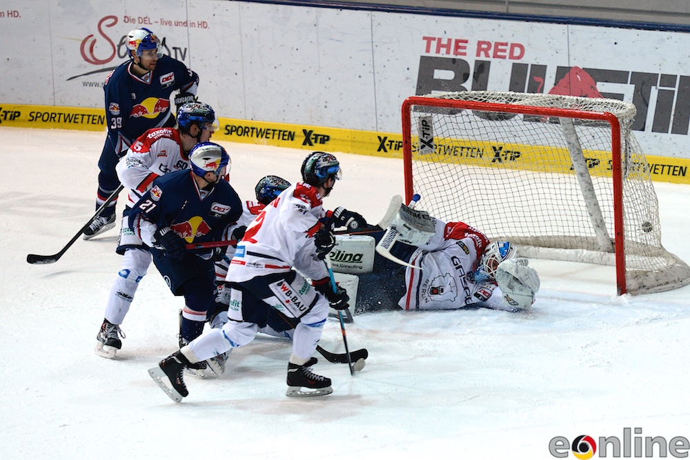 Beide Teams legten vom Eröffnungsbully weg ein Tempo aufs Eis, das an ein entscheidendes Spiel einer Playoff-Serie erinnerte. In der dritten Minute hatte Daryl Boyle das 1:0 für die Hausherren auf der Kelle, er zielte aber aus zentraler Position direkt auf den Körper von Berlins Goalie Petri Vehanen. Kurz darauf entwickelte sich aus einer Münchner Chance ein 2-auf-1-Konter der Gäste. Petr Pohls Schuss konnte Niklas Treutle noch abwehren, der Abpraller fiel jedoch direkt vor die Füße von André Rankel, der problemlos zur Gästeführung einschieben konnte (3.). In den folgenden Minuten deckten die Red Bulls den Eisbären-Kasten mit Schüssen ein. Einzig und allein Vehanen hatten es die Berliner zu verdanken, dass die Partie nicht kippte. Zunächst hatte der Finne noch Glück, dass ein abgefälschter Schuss von Geburtstagskind Garrett Roe knapp am Pfosten vorbeitrudelte.