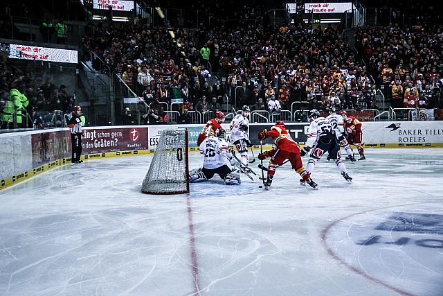 Das zweite Drittel dann wesentlich rasanter: Nur zweieinhalb Minuten waren gespielt, als Goepfert-Kumpel Casey Borer zur erneuten Führung der Berliner traf (22:22, Borer; Assist: Kai Wissmann). Die DEG jetzt unaufmerksam und unkonzentriert. Die Eisbären mit Aufwind und dem dritten Tor des Abends (24:51, Ziegler, Assist Noebels, Tallackson). Erst während ihrer fünf minütigen Überzahl (Tallackson, 5 + Spieldauer, hoher Stock) drehte Rot-Gelb langsam wieder richtig auf. Folgerichtig und konsequent sorgte Kapitän Kreutzer auf Zuspiel von Collins und Schiestel dann für das 3:2 (27:17, Kreutzer, Assist Collins, Schiestel). Lukas Lang hingegen merkte man in dieser Schlussphase die wenigen Spiele in dieser Saison kaum an, er konnte mehrere Großchancen der Berliner vereiteln. Mit einem 2:3 Rückstand ging es in die Kabine. Noch war alles drin.