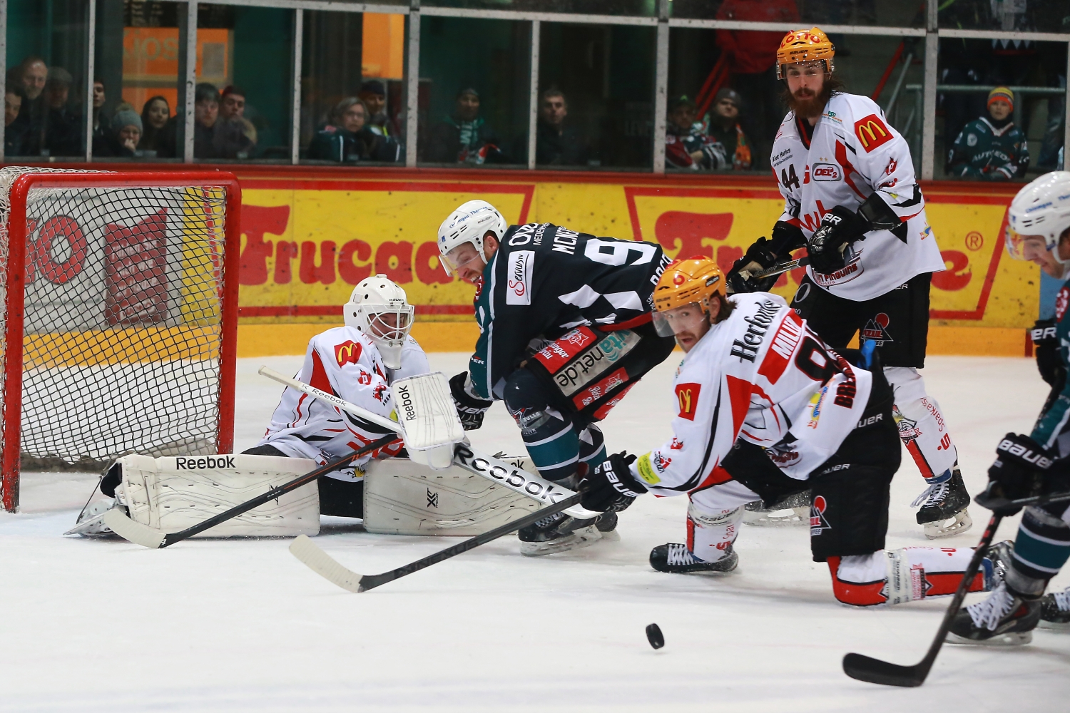 Eine Minute vor Schluss nahm Gäste-Trainer Michael Stewart seinen Torhüter für einen sechsten Feldspieler raus und Bremerhaven setzte Rosenheim unter Dauerbeschuss. Herden hielt mehrere Male die auf ihn einprasselnden Schüsse. Dies geschah vier Sekunden vor Schluss nicht. Andrew McPherson bekam einen Querpass, den Mario Trabucco um Milimeter nicht erwischte. McPherson zog ab und der Puck rutschte durch Herden, dem die Sicht vollkommen genommen war, ins Tor.