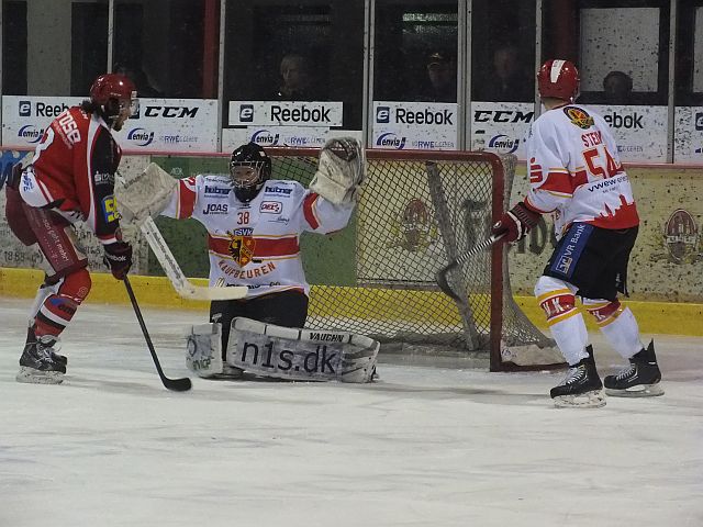 Kaufbeuren musste kurzfristig auf Daniel Menge verzichten und so wurde die Aufgabe Punkte zu holen für die Gäste noch schwerer. Schon in der 1. Minute gab es dann das 1. Powerplay für die Hausherren, doch da konnte man sich noch nicht allzu gut in Szene setzen. Auch die Allgäuer durften sich bald darauf in Überzahl beweisen (5.), doch auch bei ihnen sollte da kein Tor gelingen. Allerdings blieb Kaufbeuren am Drücker uns konnte nur 6 Sekunden nach Ablauf der Strafzeit den Puck hinter Ryan Nie versenken. Die Gäste zeigten einen guten Kampf und machten es dem Team um Kapitän Andrè Schietzold nicht allzu leicht. Erst in der 12. Spielminute durften die Rot/Weißen den Treffer zum Ausgleich bejubeln und dieser Treffer schien ihnen etwas Aufschwung zu geben. Pasi Häkkinen musste 127 Sekunden später den 2. Puck aus seinem Kasten holen. Dieses Tor erzielte Marvin Tepper in Überzahl. Mit dem Stand von 2:1 ging es dann auch in die 1. Drittelpause.