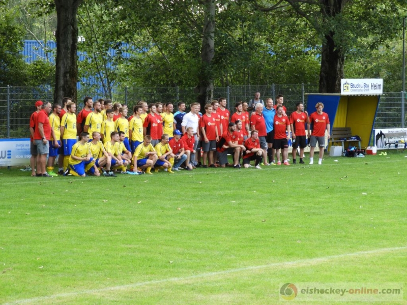Ein etwas deutlicheres Ergebnis aber ebenso viel Freude gab es dann am Samstagnachmittag auf dem Neukirchner Sportplatz. Dort trat unsere Mannschaft zum Benefizspiel für Kinder für Kinder gegen die Männermannschaft der SG Traktor Neukirchen an. Die Traktoristen gewannen den lockeren Kick schlussendlich mit 12:6 und machten es den Kufencracks nicht leicht. Auf ungewohntem Geläuf kamen jedoch Vorjahresgoldhelm Patrick Pohl sowie der Medienbeauftragte Aaron Frieß zu jeweils einem Treffer, Geschäftsführer Jörg Buschmann sowie André Schietzold konnten sich sogar doppelt in die Torschützenliste eintragen.