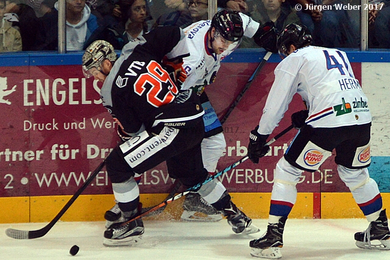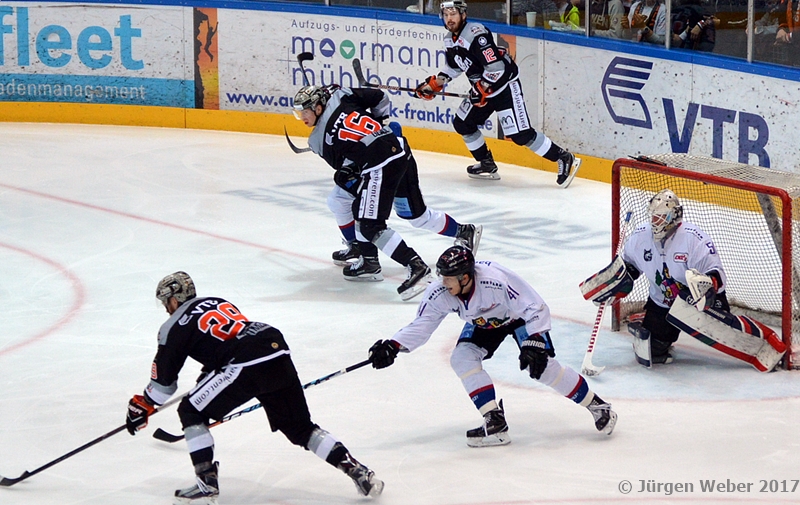 gebürtige Weisswasseraner konnte den Gästegoalie nicht überwinden. Dies gelang dann in der 28. Minute Braden Pimm, der in Überzah nach Doppelpass mit Klinge die gesamte Hintermannschaft der Füchse überlief und Franzreb das Spielgerät zum 1:0 durch die Hosenträger schob. Eine Minute später, erneut in Überzahl, hatte Klinge den nächsten Treffer auf dem Schläger. Jedoch reagierte Franzreb hervorragend und verhinderte, dass der Puck im langen Eck einschlug.