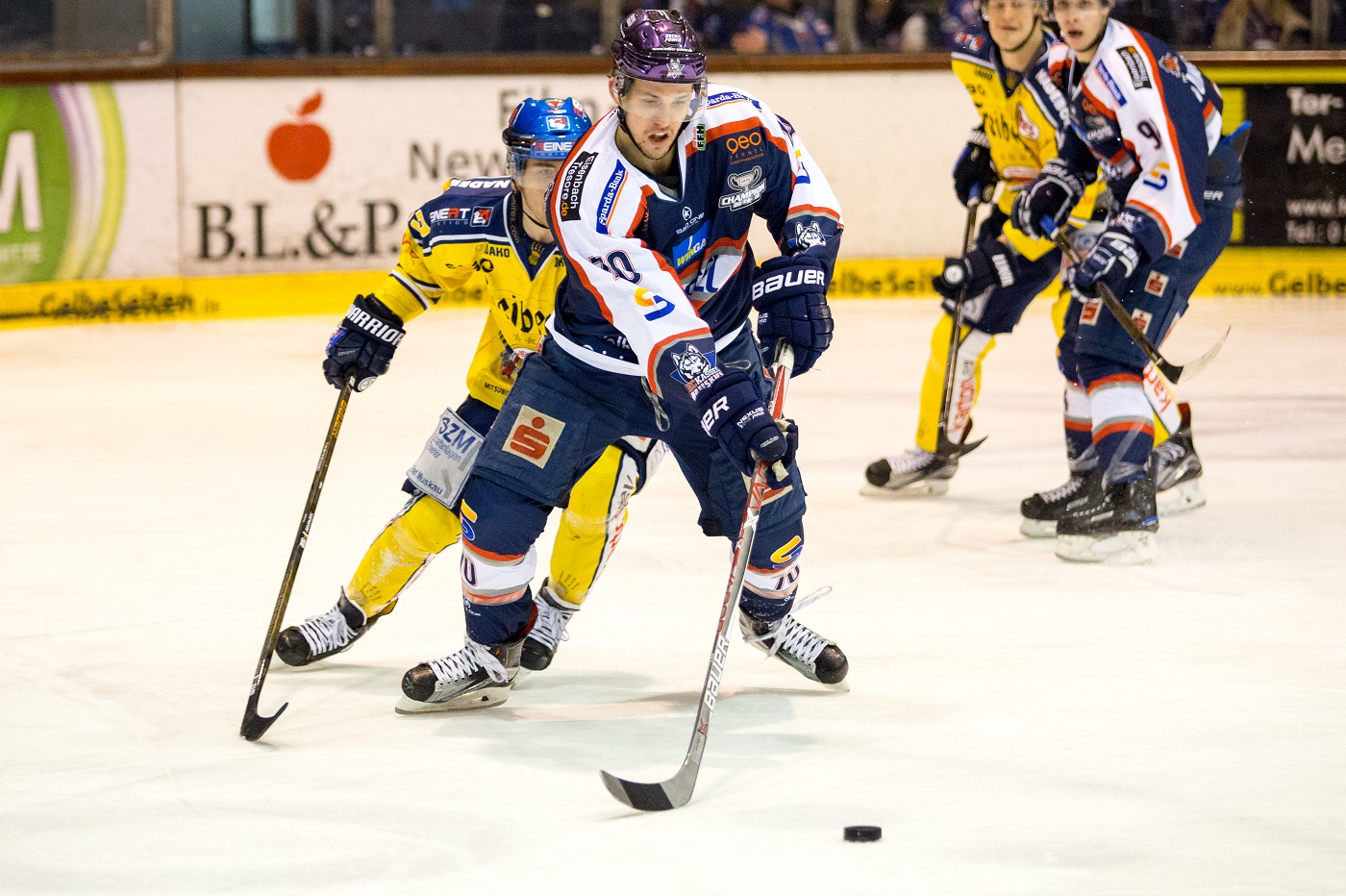 Im 1. Drittel versuchten die Löwen, sofort viel Druck auf die Freiburger Defensive auszuüben. Freiburg war bemüht, in der Abwehr kompakt zu stehen. Die Hausherren waren immer wieder im Angriffsdrittel, doch den Gästen gelang es, die Stürmer der Löwen in den Ecken zu halten und so kam kaum ein Puck vor das Tor, in den Slot. Die Wölfe versuchten mit dem ein oder anderen Konter zum Erfolg zu kommen. Viele Torchancen kamen nicht zustande. Die besten Chancen hatten auf Frankfurter Seite Brett Breitkreuz (Foto) und auf Seiten der Gäste Top-Scorer Christian Billich.