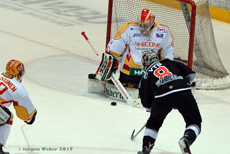 Kurz darauf hatte Beck auch noch die große Chance auf den Ausgleich, konnte Jaeger aber dieses Mal nicht überwinden. Mitte des 3. Drittels kamen dann die Löwen wieder besser ins Spiel. Brett Breitkreuz scheiterte noch an Gäste-Goalie Matthias Nemec. In der 54. Spielminute dann eine schöne Kombination über Nils Liesegang, ein perfekter Pass von Roman Pfennings auf Kapitän Patrick Jarrett, der zum 4:2 traf. Alexis Loiseau hatte noch einmal eine große Chance für den SCR, doch Brett Jaeger rettete mit einem Super-Save. In der Schlussminute traf denn Christoph Gawlik noch zum 5:2-Endstand für die Löwen ins leere Riesserseer Gehäuse.