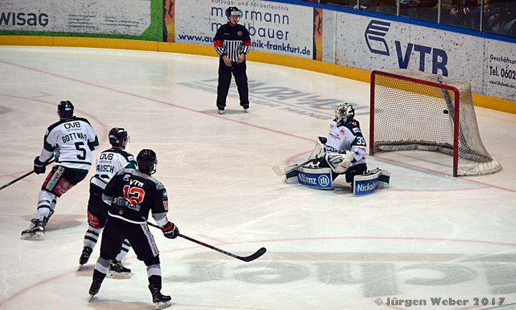 Bei den Gästen stand erneut Jan Guryca zwischen den Pfosten, nachdem sich Mikko Rämö aufgrund von Rückenproblemen abmelden musste. Somit kam Ales Kranjc wieder in der Defensive zum Einsatz, so dass exakt derselbe Kader - plus dem wiedergenesenen Tom Pauker - wie am Freitag gegen die Löwen zum Einsatz kam. Das Match begann verhalten: es dauerte bis zur 5. Minute, ehe Kassels Müller mit einem strammen Schuss knapp am Bad Nauheimer Tor vorbei die Offensivaktionen startete. Hungerecker verzog im Slot stehend (6.) und nach einer fragwürdigen Strafzeit gegen Daniel Ketter gingen die Gastgeber schließlich in Front. Die zwei Minuten waren ohne Torchance der Nordhessen bereits überstanden, da vergaß man Carter Proft, der mit einem von Radek Krestan noch leicht abgefälschten Schuss zum 1:0 einnetzte (8.). Aber auch die Kurstädter bekamen ihre Überzahlgelegenheiten: ein erstes Powerplay verpuffte zwar, war aber gleichzeitig der Auftakt für starke Bad Nauheimer Minuten. Hofland (13.) knapp am Tor vorbei sowie Meisinger (14.) mit einem strammen Schuss, bei dem Keller die Fanghand zücken musste, sorgten für Chancen der Gäste. Glück dann im Gegenzug, als Kassels DeBlois nur den Pfosten traf. Anschließend konnten die Wetterauer erneut in Überzahl agieren, so dass Schiedsrichter Vogl den Unmut der Zuschauer auf sich zog. Dineen hatte hierbei die größte Gelegenheit der Gäste im ersten Abschnitt, doch der US-Amerikaner hat derzeit einfach das Pech am Schläger, so dass sein Schuss frei im Slot stehend über den Kasten ging (16.). Die Roten Teufel hätten gar vier Minuten mit einem Mann mehr agieren können, doch ein klares Foul gegen Marcus Götz ahndete der Unparteiische nicht, während in der nächsten Szene Ales Kranjc sehr fragwürdig in die Kühlbox musste, so dass es schließlich mit einer knappen Kasseler Führung in die erste Pause ging.