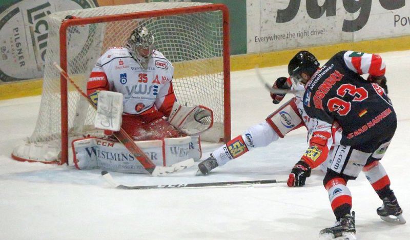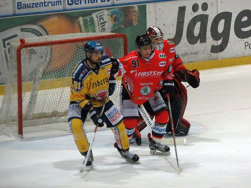 Folge zwar gefällig mit, entfachte aber kaum Torgefahr. Anders die mit drei Centern und vier Außenpärchen im Sturm sehr variabel agierenden Gastgeber, die regelmäßig zu besten Torchancen kamen und vor allem Mitte des ersten Spielabschnitts das Kaufbeurer Tor kräftig unter Beschuss nahmen. Gästekeeper Stefan Vaijs rettete gegen Greg Classen, Leopold Tausch, Tyler McNeely, Manuel Edfelder und Peter Lindlbauer mit bemerkenswerten Paraden, als er bei einem Schuss von Simon Heidenreich schon geschlagen war rettete die Latte (14.). Mit nur einem Gegentor waren die Rot-Gelben, für die Michael Fröhlich nach neun Minuten eine gute Torchance vergab, zur ersten Pausensirene jedenfalls sehr gut bedient.