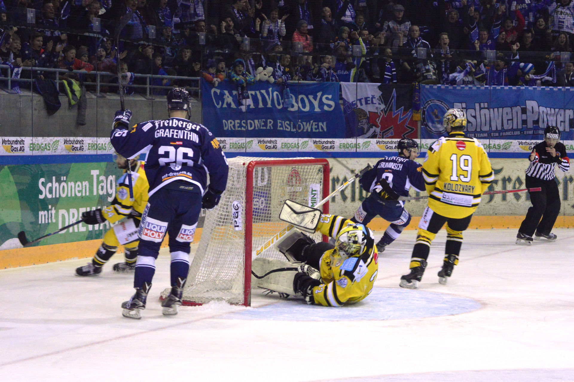 (DEL2/Dresden) PM Die Dresdner Eislöwen haben das DEL2-Punktspiel gegen die Eispiraten Crimmitschau mit 6:1 (2:0; 3:1; 1:0) für sich entschieden. Vor ausverkauftem Haus (4412 Zuschauer) brachte Martin Davidek sein Team in der fünften Minute in Führung. Mirko Sacher war ebenfalls für Dresden erfolgreich, doch der Referee wertete den Treffer nach Videobeweis wegen Behinderung des Torwarts nicht.