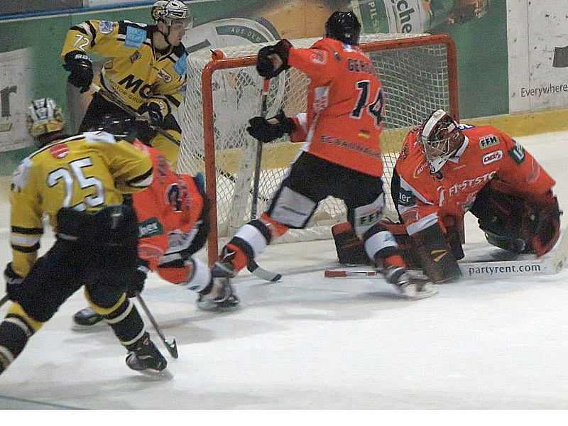 Bei den Gästen blieb heute Joel Johansson als fünfter Ausländer zuhause, für den Schweden war Marius Erk mit von der Partie und kam in der Defensive zu Eiszeiten. Somit stand Mikko Rämö wieder zwischen den Pfosten, der bereits nach wenigen Sekunden eine Großchance von EHC-Topscorer Wohlberg vom Eröffnungsbully hinweg vereiteln musste. Nach einer frühen Strafe gegen Dusan Frosch musste der Finne noch zwei Mal eingreifen, so dass er gleich auf Betriebstemperatur war. Kaum wieder komplett entwickelte sich ein interessantes und mit offenem Visier geführtes Spiel, in dem beide Seiten ihre Chancen bekamen. Die Goalies waren somit im Blickpunkt des Geschehens, allerdings waren hüben wie drüben nur wenige Hochkaräter dabei (Alanov verpasste mit der besten EC-Chance im ersten Abschnitt aus etwas zu spitzem Winkel gegen Vosvrda), was es den Torstehern entsprechend einfach machte. Ein Powerplay der Hessen Mitte des Abschnitts (eine aussichtsreiche Gelegenheit von Andreas Pauli) verpuffte dann ebenso wie die weiteren Angriffsbemühungen der Kontrahenten, denn mit zunehmender Spieldauer neutralisierte man sich mit zahlreichen (fair geführten) Zweikämpfen mehr oder minder.