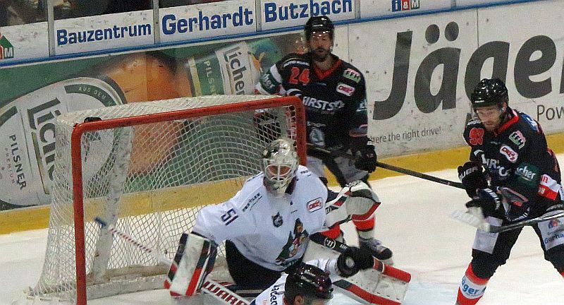 Die Hessen waren dran und sie hatten Erfolg. Vor allem in der 8. und 9. Minute: zunächst fälschte Vitalij Aab einen Hofland-Schuss unhaltbar zur 1:0-Führung ab, dann staubte Tom Pauker (erstes Saisontor) nach einem Götz-Schuss, den Langmann nicht festhalten konnte, keine Minute später zum 2:0 ab. Ganze zehn (!) Sekunden später markierte Andreas Pauli das 3:0, so dass die leider heute nur kleine Kulisse (Minusrekord mit 1.450 Zuschauern) ihren Spaß hatte. Diese dauerte allerdings nur bis zur 11. Minute an, nachdem EVR-Topscorer Tousignant am langen Pfosten wartend einen Querpass zum ersten Gäste-Treffer verwerten konnte. Stempelte man dies noch als Betriebsunfall ab, da war es Pfaffengut nur 90 Sekunden später, der mit einem Distanzschuss den Anschlusstreffer herstellte, so dass nun höchste Vorsicht geboten war.