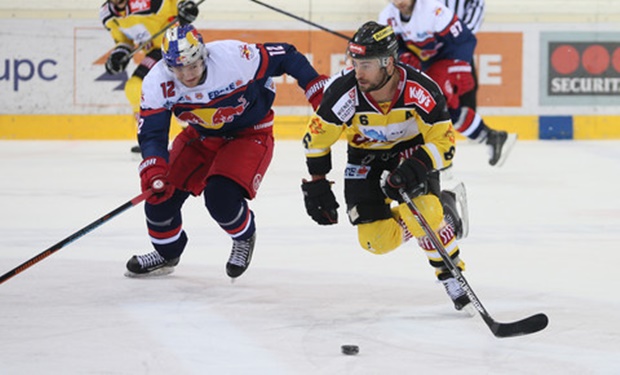 Einen Kampf um jede Scheibe boten sich die Caps und die Red Bulls in den ersten 40 Minuten! [Foto: Red Bull Media-GEPA]