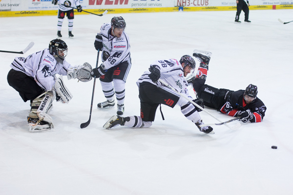...aber vergeblich, denn auch diesmal gingen die Black Dragons leer aus. Im ersten Drittel zeigten die Füchse wer das Eis in der Scania Arena beherrscht. Lediglich zweimal kamen die Dragons gefährlich vor den Kasten von Füchse Goalie Stefaniszin. 3:0 für die Füchse zum ersten Pausentee. Im zweiten Drittel verloren die Füchse an Faden, spielten zwar streckenweise recht ansehnlich und kombinierten gut, aber wie so oft nicht effektiv genug um die Führung auszubauen. Die Erfurter hingegen nutzten Unzulänglichkeiten in der Duisburger Abwehr, zeigten das diese mit schnellem Passspiel zu überwinden und verletzlich ist, verbuchten folgerichtig gleich zwei Treffer und verkürzten auf 2:4. Es sollten aber die einzigen beiden Netze für die Black Dragons und auch Aussetzer in der Abwehr für die Füchse an diesem Abend sein.