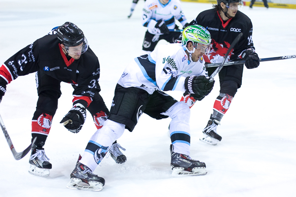 Aber die Kufencracks des EVD gaben heute die beste Antwort und argumentierten mit einem 'Wir leben noch und wir können auch noch noch Eishockey spielen!'. Wie sich die Anspannung löste, beschreibt am besten der unbändige Torjubel von Lars Grözinger nach seinem 5:2, als er wie entfesselt zur Bande fuhr und vor den Zuschauern seinen angestauten Frust entlud. Die Füchse im ersten Abschnitt wie entfesselt. Nur selten sah man die Icefighters in diesem Drittel vor dem Tor von Goalie Stefaniszin. Die 3:0 Drittelführung weder zu hoch noch unverdient. Im zweiten Drittel begannen die Icefighters stark, die Füchse gerieten ein wenig ins Straucheln und kassierten zwei Tore, fingen sich sich aber rechtzeitig wieder und legten nach. Das letzte Drittel ein Spiegelbild des ersten, aber wieder mit einigen vergebenen Hochkarätern auf Seiten der Füchse. So scheiterte Mieskowski frei vorm Tor am eisernen Gestänge und Niddery vergab einen Penalty gegen Staudt, Leipzigs Torwächter, der trotz der sechs Gegentore der Garant dafür war, dass die Niederlage für die Sachsen an diesem Abend nicht höher ausfiel.