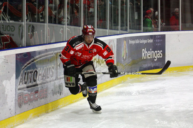 Aus Grund hieß es nun im Mittelabschnitt zu einem effektiven Spiel zurückzufinden und alles für den Sieg zu geben. Und dies taten dann auch die Saale Bulls, welche kämpferisch aus der Kabine zurückkamen, aber auch die zahlreich mit dem Zug mitgereisten Fans. Und es schien zu helfen, denn der Ausgleich konnte durch Eric Wunderlich (23.) und Martin Piecha (36.) erreicht werden. Doch auch die Erfurter wollten den zweiten Platz unbedingt halten und schlugen mit dem Tor von Grosch in der 18. Minute zurück. Und eine Minute später konnten sie den alten Abstand nach einem erfolgreichen Penalty wiederherstellen.