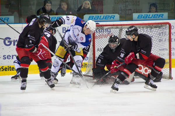 War es im ersten Drittel noch recht ausgeglichen, kämpften die Duisburger die Königsborner im weiteren Spielverlauf regelrecht nieder. Man kann im dritten Drittel sogar vom totalen Einbrechen der Bulldogs sprechen, deren Tormann mehr als nur unzufrieden mit seinen Vorderleuten war. Und immer müssen die doch so unschuldigen Getränkeflaschen dran glauben.