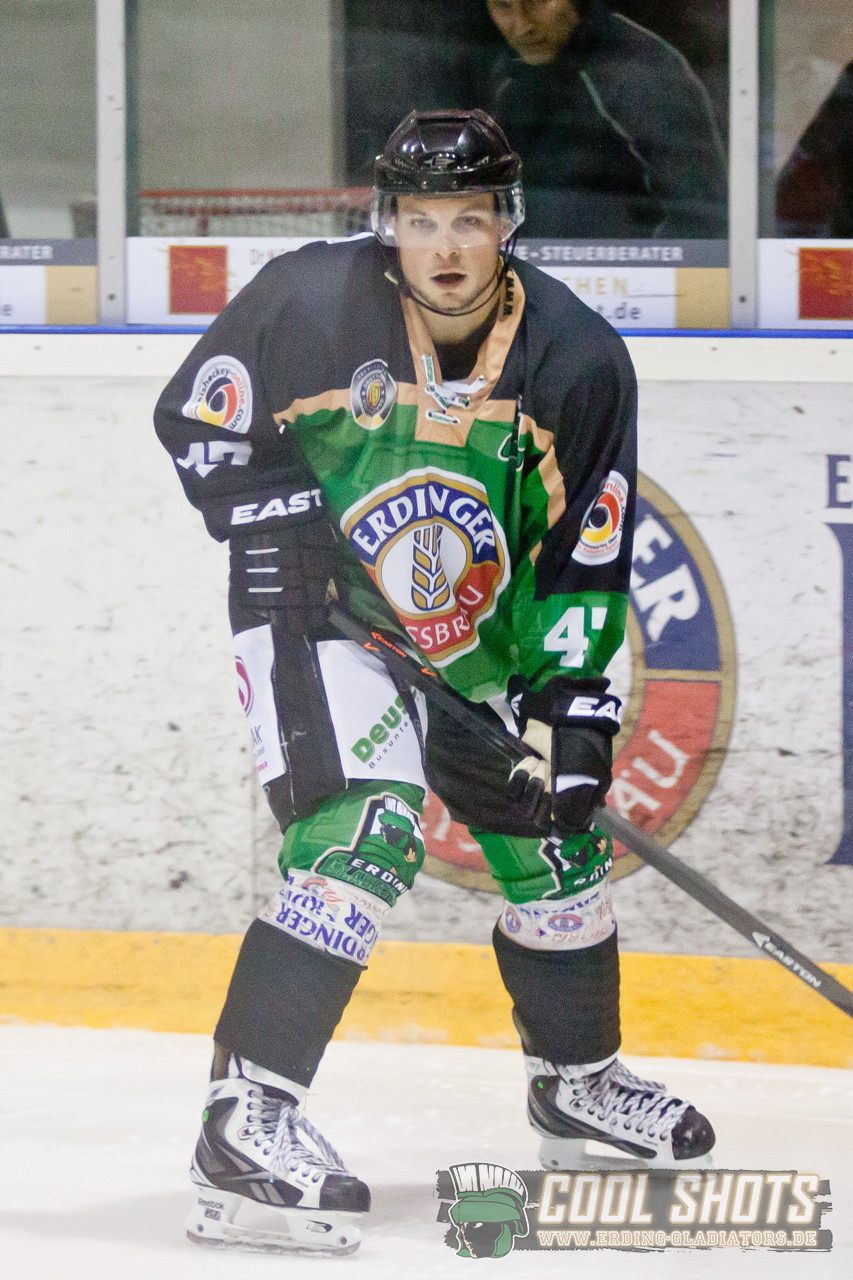 Die Personalsorgen von Erdings Trainer John Samanski waren noch größer geworden. Neben Daniel Krzizok, Simon Pfeiffer, Patrik Samanski und Andrew Schembri, die bereits gegen Regensburg gefehlt hatten, war auch Kevin Steiger nicht dabei. Der Verteidiger, der am Freitag verletzt ausgeschieden war, musste mit Leistenproblemen daheim bleiben. Ins Tor beorderte der Gladiators-Coach diesmal Timon Ewert. Er stand zwar vor genau einem Jahr bei der 1:10-Schlappe bei den Wölfen zwischen den Pfosten, hatte aber am Saisonende in der Playoff-Runde in den vier Spielen gegen Selb hervorragende Leistungen gezeigt.