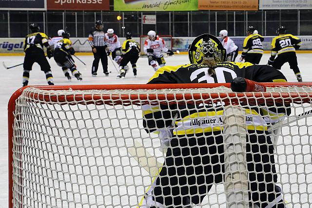 Sofort ab dem Anpfiff versuchten die Gastgeber mit lautstarker Unterstützung ihrer Fans den ERC Sonthofen unter Druck zu setzen. Dies gelang ihnen jedoch nicht, denn Schwarz-Gelb hielt voll dagegen und wurde immer spielbestimmender. Mehrere gut vorgetragene Angriffsaktionen konnten noch nicht verwertet werden, aber der ERC blieb am Drücker. Nach 9 gespielten Minuten belohnten sich die Bulls endlich. Rob McFeeters schoss seine Farben auf Vorlage von Janne Kujala und Tomas Gulda in Front. Weiden versuchte nun mit aller Macht den Ausgleich zu erreichen, kam aber durch sehr gute Defensivarbeit nicht zum Abschluss. Besser machte es der ERC Sonthofen, Brad Miller konnte in Unterzahl die Führung auf 2:0 ausbauen. Das erste Drittel endete 2:0 für den ERC.