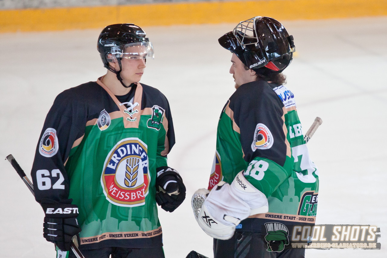 Wider Erwarten hatte sich die personelle Lage bei den Gladiators wenigstens ein wenig entspannt. Simon Pfeiffer war fit zurück, Lars Bernhardt und Andrew Schembri waren zwar angeschlagen, hielten aber durch. So konnte sich der Coach diesmal sogar den Luxus einer vierten Sturmreihe leisten, in der Besetzung Pfeiffer/Deubler/Fischer, die ihre Sache nicht schlecht machte. Im Tor schenkte Trainer Samanski Louis Albrecht das Vertrauen.