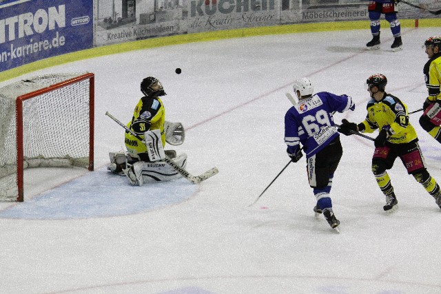 Im Mittelabschnitt versuchte der EVW dann anfangs etwas offensiver zu agieren und hatte auch die eine oder andere Möglichkeit, doch der sichere Bädermann im Tor der Gäste war auf dem Posten. Spätestens mit dem 0-2 durch Kasten, der einen Powerplaynachschuss verwertete hatte das Spiel wieder Einbahnstraßen Charakter und Bartosch und Müller erhöhten für die in allen Belangen überlegenen Tigers auf 0-4 nach 40 Minuten. Phasenweise war ein Klassenunterschied nicht zu leugnen und Gelb-Schwarz regierte auf dem Eis, wie auch auf der stimmungsvollen Tribüne. Spielerisch und läuferisch, aber auch in den Zweikämpfen gewannen die Wagnerstädter alle wichtigen Duelle. Einzig dem besten Blau-weißen Engmann war es zu verdanken, dass es nicht noch deutlicher wurde.