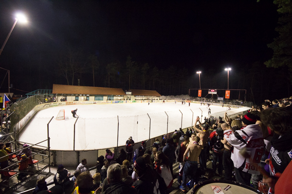 Umrahmt von hohen Fichten liegt die Arena gemütlich schlummernd inmitten der 'Großen Kreisstadt' Niesky und in Rufweite zur polnischen Grenze nahe Görlitz. Die Gastfreundschaft war riesig, man wurde herzlich empfangen und bestens versorgt. Ein sympathischer Haufen - diesen Eindruck gewann man schon beim Gastspiel der Mannschaft in der Duisburger Scania-Arena, welches die Füchse mit 13:0 für sich entscheiden konnten. Sportlich lief es bei den ‚Tornado Winterspielen‘ noch nicht so richtig rund und man belegt aktuell mit nur 3 Zählern auf dem Guthabenkonto, eingefahren beim Auswärtsspiel in Herne, den letzten Platz der Verzahnungsrunde in der Oberliga-Mitte. Dann kommen auch noch die Duisburger, die erst am Tag zuvor den Platz an der Sonne und somit den ersten Tabellenplatz durch ein 3:2 (0:1/1:1/2:0) von den Icefightern Leipzig, in der etwas zu klein geratenen Festhalle in Tauchau, erobert hatten.