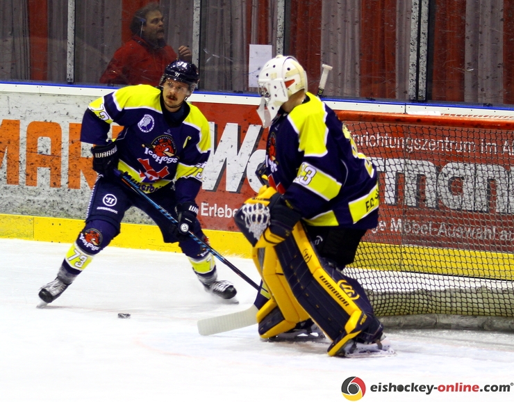 Genauso wie sein gegenüber Timon Bätge bei den durchaus vorhandenen guten Chancen der Gäste. So blieb das erste Drittel torlos und auch im zweiten Abschnitt konnte sich zunächst keine der beiden Mannschaften entscheidend durchsetzen, auch wenn sich die Gastgeber nun ein leichtes optisches Übergewicht erarbeiteten. Kurz vor Drittelende leistete sich Ambergs Andreas Hampl eine sechsminütige Strafzeit wegen Hakens sowie unnötiger Härte und dies sollte Folgen haben. Denn kaum hatte er auf der Strafbank Platz genommen, traf Jake Fardoe mit einem platzierten Schlenzer zur Führung für die Gäste, die auch den Schlussabschnitt mit einem Mann mehr beginnen konnten. Die zweite Strafzeit von Hampl überstanden die Hausherren noch unbeschadet, doch die dritte nutzte Friedrich Kolesnikov mit einem platzierten Schuss aus vollem Lauf zum 2:0. Amberg schien nun sichtlich geschockt und hätte danach durchaus noch höher in Rückstand geraten können, doch Bätge bewahrte seine Mannschaft vor dem vorzeitigen Ko.