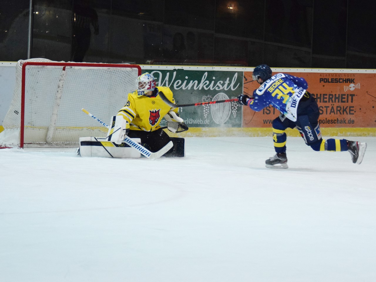 Bereits vor dem Spiel herrschten bei dieser in Pfaffenhofen stattfindenden Partie ungewöhnliche Vorzeichen. So liefen die, aufgrund der Verschiebung, als Heimteam auflaufenden Löwen natürlich auch in ihren Heimtrikots auf, während Pfaffenhofen ihrerseits die gelben Auswärtsleibchen ausgepackt haben. Möglicherweise lag es auch an den vom EHC traditionell im Dezember getragenen Weihnachtstrikots, dass sich die Löwen bereits nach zehn gespielten Sekunden zum 2. Advent ein Geschenk in den Schlittschuh legten. Auf Zuspiel von Michal Popelka und Christian Neuert erzielt Sebastian Stanik, vor den Augen von rund 20 mitgereisten Löwen-Fans rechts oben das 1:0. Pfaffenhofen, selbst nur mit elf Feldspielern angetreten, konnte im ersten Durchgang, sowie auch im weiteren Verlauf des Spiels nur schwer mithalten. Außer einigen Nadelstichen, hauptsächlich durch den sehr auffälligen Jakub Felsöci, war nicht viel zu holen. Die Löwen hingegen hätten ihre Führung schon früh ausbauen können, insgesamt vier Mal trafen oder striffen sie Pfosten oder Latte ohne Torerfolg. Der stellte sich im Anschluss gleich im Doppelpack ein. Nach einer Strafe von Patrick Zimmermann schnappt sich erst Christian Neuert, der an diesem Abend mit nahezu jedem Spielzug erneut seine Klasse unter Beweis stellt, das Spielgerät und versenkt dieses im Tor von Thomas Hingel. Nur rund eine Minute später hat Leon Decker die große Möglichkeit zum 3:0, wird jedoch regelwidrig zu Fall gebracht und erhält einen Penalty. Diesen verwandelt er in bester Torjäger-Manier und erhöht somit ebenfalls in Unterzahl auf den 3:0 Pausenstand.