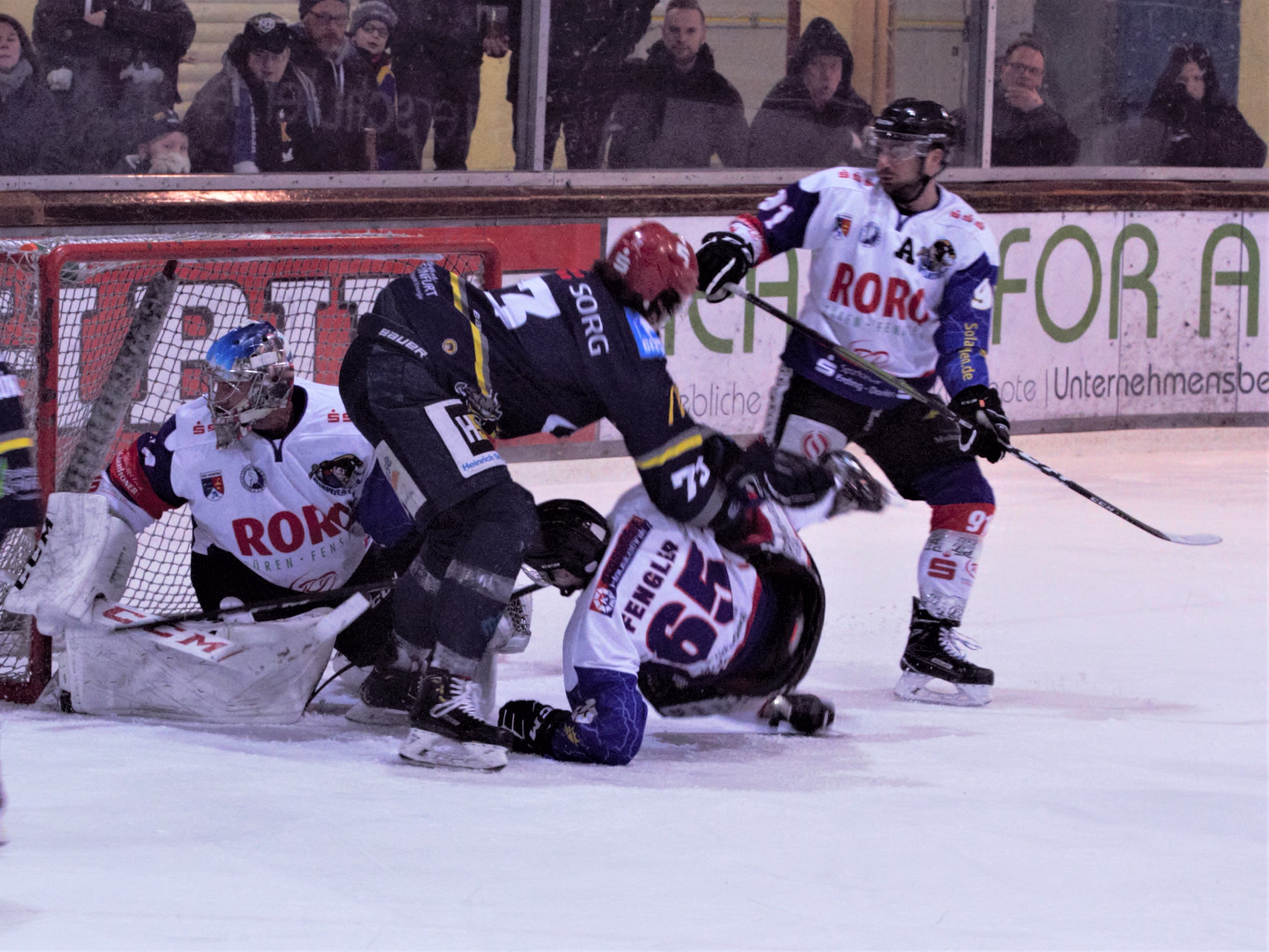 Wieder zurück aus der Pause machten die Gäste gleich enorm Druck. Mit den Strafzeiten waren jetzt auch die Eispiraten an der Reihe, aber mit dem numerischen Vorteil konnte Gretsried nicht viel anfangen. Und waren die Eispiraten in kompletter Formation, kamen sie immer wieder zu sehr guten Tormöglichkeiten – und Pech. So blieb in der 27. Min. der Puck nach Vrba’s Gewaltschuss nur Zentimeter vor der Torlinie liegen.