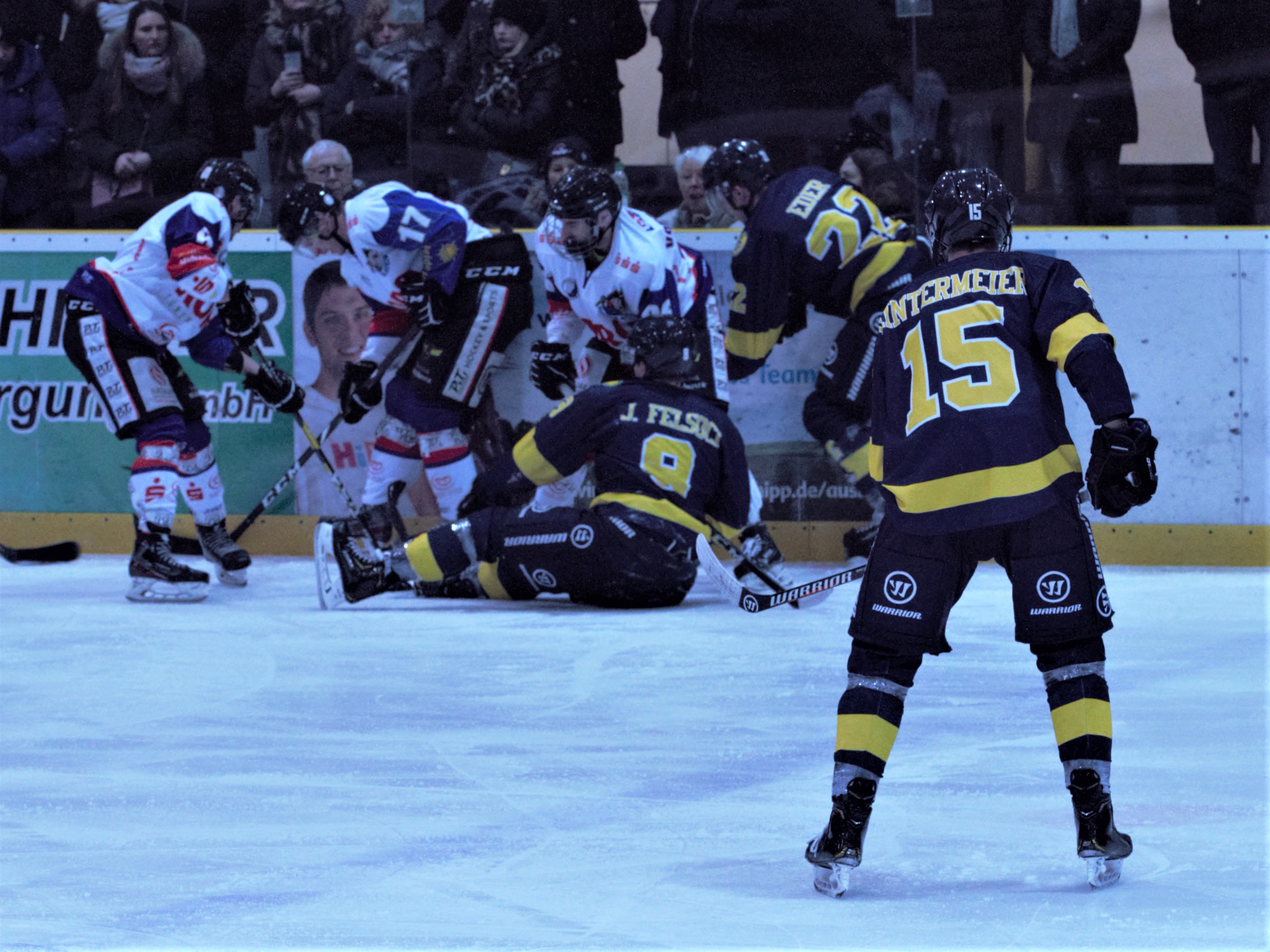 Etwas beruhigender war das vierte Tor der Gastgeber. Florian Höfler konnte nach Zusammenspiel mit Maxi Malzatzki und Lukas Novacek in der 46. Minute zum 4:2 treffen. Es war bereits der Schlussabschnitt, der angebrochen war. Pfaffenhofen kam zwar weiterhin zu guten Möglichkeiten. Eine daraus sollte durch eigene Unterzahl entstehen. Nick Endress war durchgebrochen und allein auf dem Weg zu Korbinian Sertl, zwar konnte er noch vom Verteidiger eingeholt werden, aber nicht mehr entscheidend gestört werden und traf zum 3:4 aus Pfaffenhofener Sicht. Zum Glück bewahrten die „Eishackler“ weiterhin Ruhe und und konnten nur zwei Minuten später (59.) das wichtige und entscheidende 5:3 machen. Lukas Novacek konnte mit seinem zweiten Treffer an diesem Abend den Sieg herbeiführen.