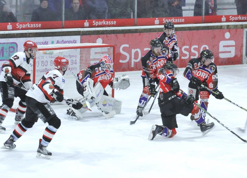 Durch die - neben den bekannten - zusätzlichen Ausfälle von Bob Wren, dessen Radiusfraktur aus dem Heimspiel gegen den SC Riessersee noch in der Nacht operiert worden war, und Nicolai Quinlan (gesperrt) musste Trainer Dominik Quinlan seine drei Blöcke sowohl in der Abwehr wie auch der Offensivabteilung radikal umbauen, ganz abgesehen von der fehlenden Qualität in den beiden Mannschaftsteilen. Gegen die ebenfalls personell gehandicapten Gastgeber legte man bei den Rot-Weißen das Hauptaugenmerk auf eine kompakte Defensive und blitzschnell vorgetragene Konter. Einen solchen versenkte Andreas Persson in der Schlussphase des ersten Abschnitts zur 1:0-Führung in eigener Unterzahl.