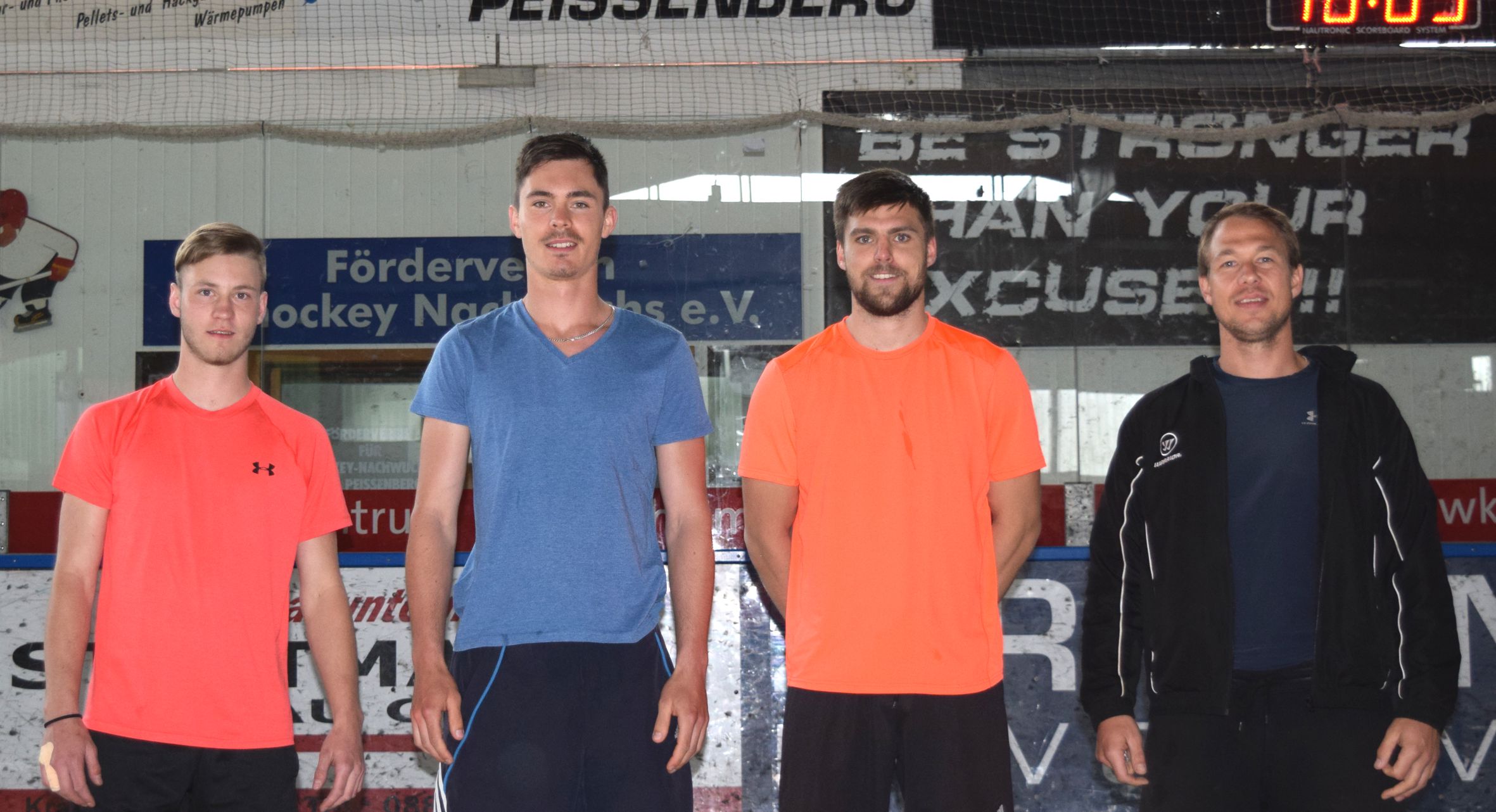 Das Trockentraining wird in Blöcken nach einem von Fitnesstrainer Klapper und Coach Staltmayr erstellten Plan durchgeführt. Es werden abwechselnd Blöcke von normalem Trockentraining in der Eishalle und im Sportgelände durchgeführt, abgewechselt von intensiven Blöcken bestehend aus Krafttraining im Fitlife Fitness- und Gesundheitsclub. Zum Start des Trainings können auch noch weitere Verlängerungen bzw. Ergänzungen des Kaders bekannt gegeben werden. Manfred „Magic“ Eichberger (rechts im Bild), Fritz Stögbauer (zweiter von rechts), Markus „Bäcker“ Andrä (zweiter von links) werden weiterhin die Eishacklertrikots tragen. Aber auch ein weiteres junges Talent, der Jugendspieler Marco Loth (ganz links), wird ab sofort ebenfalls in die erste Mannschaft integriert und wird am Training sowie an den Vorbereitungsspielen teilnehmen.